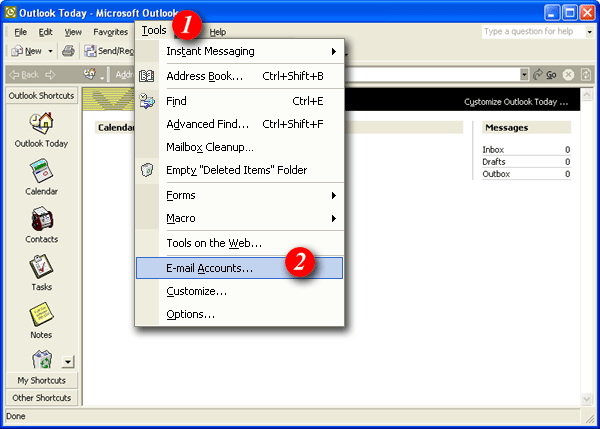 | 2)Select 'E-mail Accounts...' from the drop-down list. | ||||