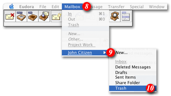 | 10)Select the 'Trash' folder (This should resolve the problem and allow you to move mail freely between folders) |