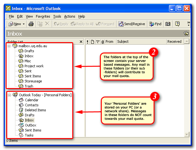 | Now that your personal folders have been setup you can start moving some of your old emails from the server-based 'Inbox' to your new local directory. Please follow the steps below: |